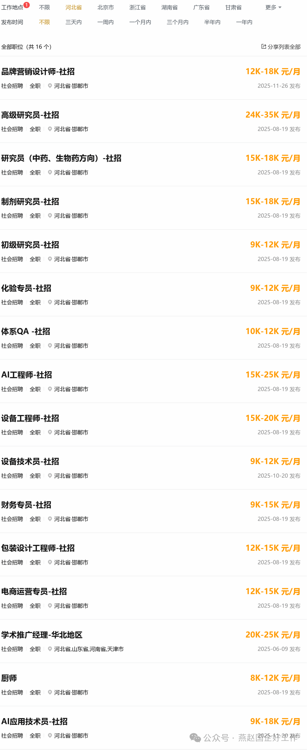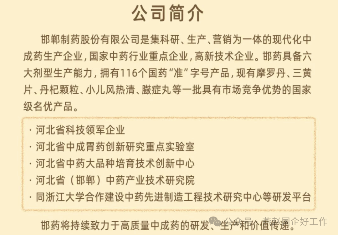 邯药公司招聘公告