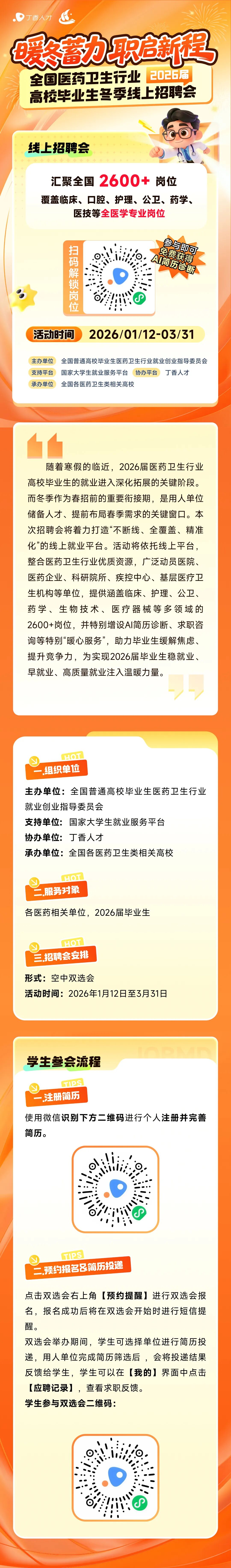 2,600+岗位 | 医药卫生类「暖冬蓄力 职启新程」招聘会