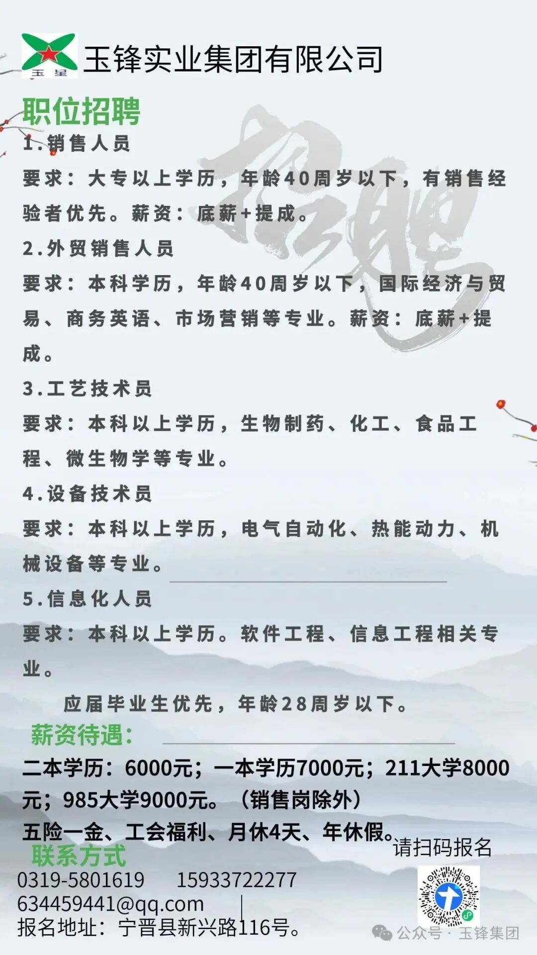 邢台市宁晋县玉锋集团2026年2月招聘公告