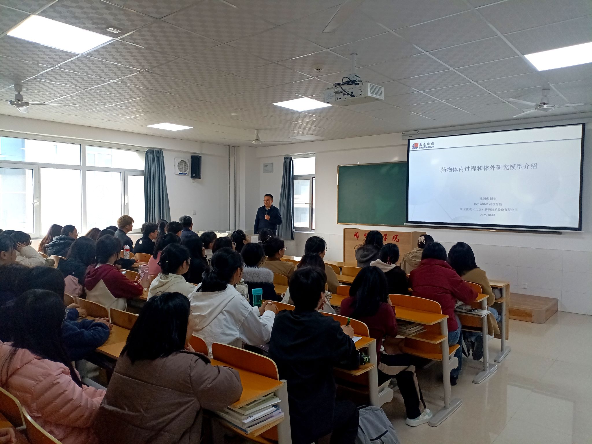 为调动药学专业学生学习积极性,了解药物研发流程,拓宽就业视野,近日,学校药学系特邀康龙化成(北京)新药技术股份有限公司体外ADME高级总监沈国庆博士,为近百名师生带来一场专题讲座。讲座中,沈国庆博士以“药物体内过程及体外研究模型”为核心,系统讲解了药物研发关键环节。他从药物ADME过程(吸收、分布、代谢、排泄)切入,将复杂的药物体内处置机制通俗化;同时详细介绍了口服药物生物利用度、首过效应等核心概念,以及从药物发现、临床前研究到临床试验、上市的全流程,并通过数据指出高投入、高风险、长周期是药物研发的显著特点。针对体外研究,沈博士重点阐述了溶解度、渗透性、代谢稳定性等体外ADME研究模型的应用价值,还结合康龙化成的服务案例,展示了从药物化学到临床开发的全链条研发服务能力。在就业方向指导环节,他介绍了康龙化成在全球的业务布局与团队规模,为学生们梳理了合成化学、DMPK/ADME、临床生物分析等药学相关岗位的能力需求,为学生职业规划提供参考。此次讲座搭建了校企交流的桥梁,不仅让师生深入了解了药物研发的前沿动态,也为学生提高学习兴趣、对接行业需求、明确就业方向提供了有力支持。